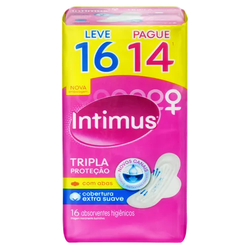Absorvente com Abas Suave Tripla Proteção Intimus Gel Pacote Leve 16 Pague 14 unid