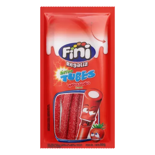 Bala Morango e Nata Fini Regaliz Ácido Tubes 80g