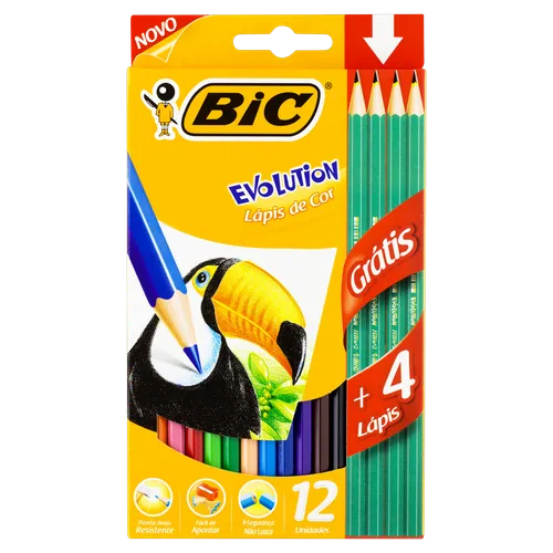 Lápis de Cor Bic Evolution Caixa 12 Unid Grátis 4 Lápis