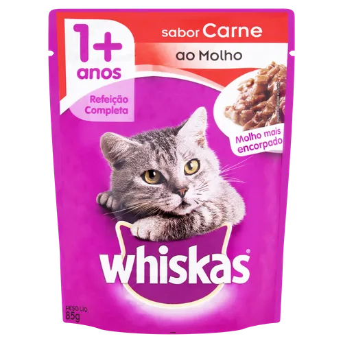 Alimento para Gatos Adultos 1+ Carne ao Molho Whiskas Sachê 85g