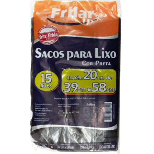 Saco Lixo Frilar Preto 15L c/10 unid
